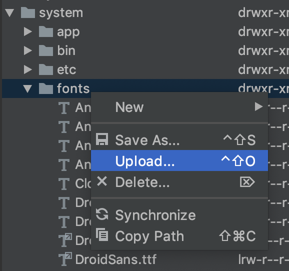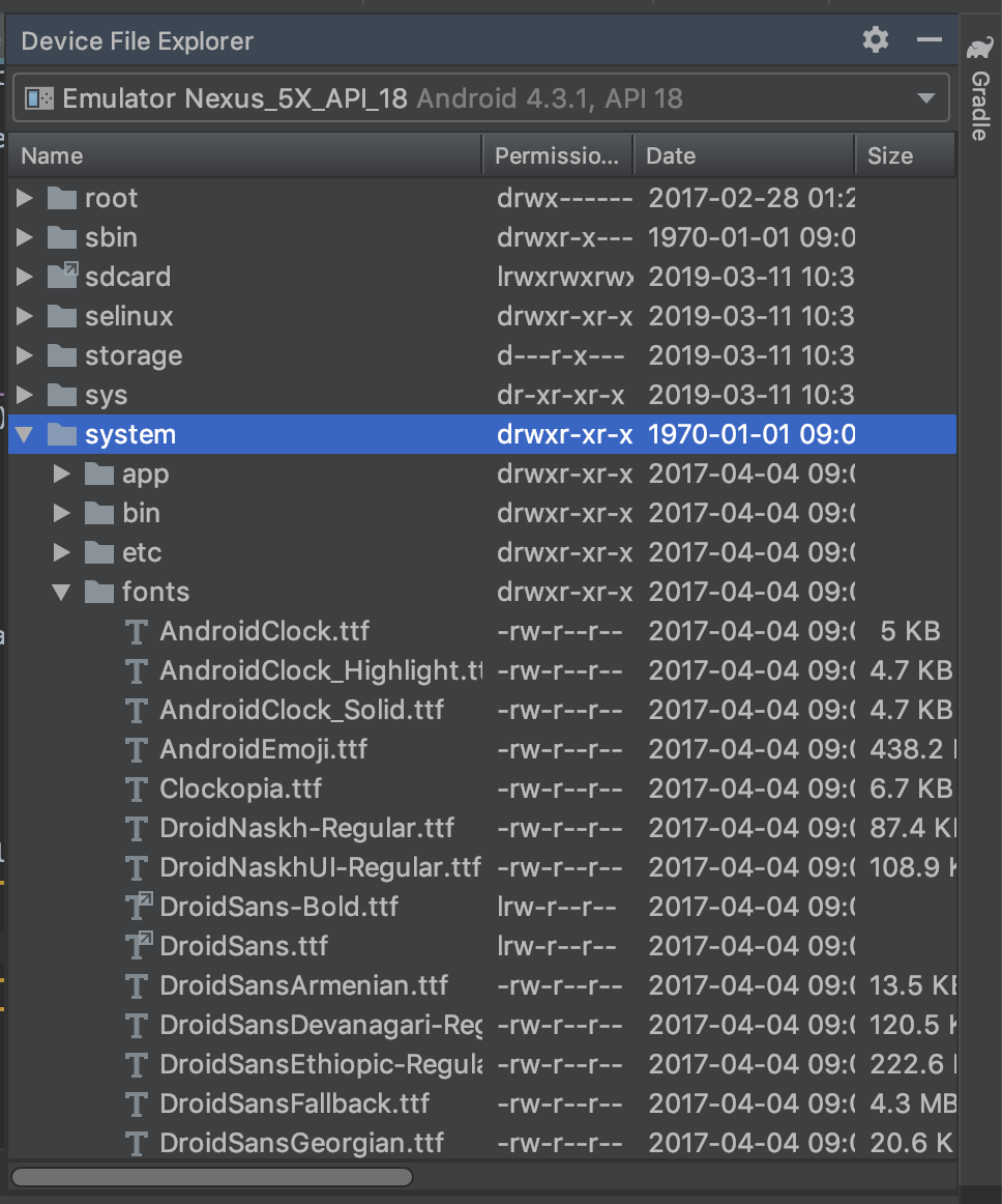 Device File Explorer에서 system-fonts로 들어가면 폰트들이 있다