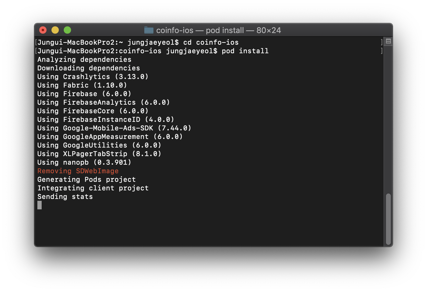 Cocoapods에서 삭제 완료 후에 정상 동작하는것을 확인했다